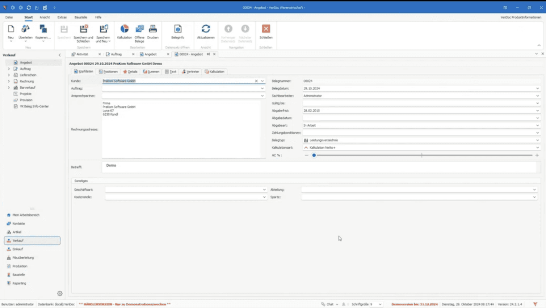 Angebotspositionen und Vorlagen